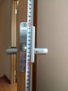 写真のドア(建具)のプレートのビスピッチは115mmです